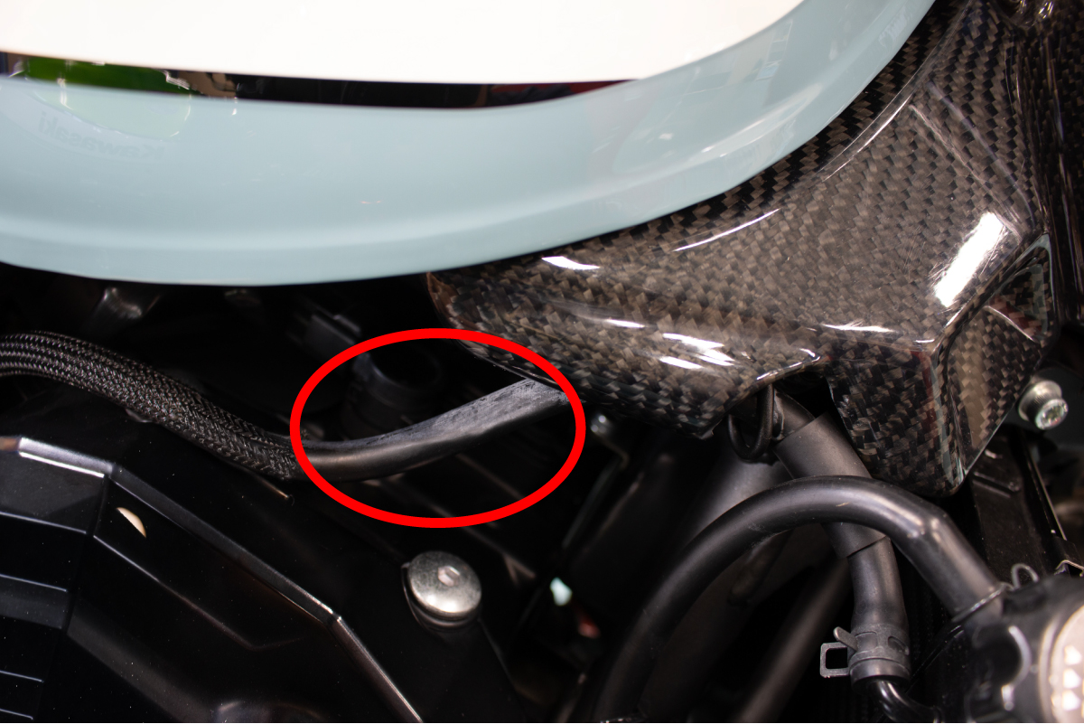 Z900RSのエンジン周りに、さりげなく存在するオーバーフローホース。